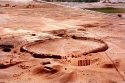 Kunsthistorisches Museum, Vienna, Austria 11/98 — 2/99 Staatliches Museum für Völkerkunde, Munich, Germany 7/99 — 1/2000 Palazzo Ruspoli, Fondazione Memmo Rome, Italy 3/00 — 6/00 Fondazione Palazzo Bricherasio, Torino, Italy 9/00 — 1/01 British Museum, London, United Kingdom 7/02 — 11/02 Sponsors and Donors: Merilyn and Gordon S. Hodgson, Falls Church, Virginia Foundation for Ancient Research & Mormon Studies, Provo Utah University of Calgary, Calgary, Canada Yemenia Airlines, Republic of Yemen Marib Bilquis Hotel, Republic of Yemen Taj Sheba Hotel, Republic of Yemen Universal Group of Tours, Republic of Yemen It is now that we turn our focus to Marib. The government of Yemen has offered the American Foundation the opportunity to return, saying they wanted Wendell Phillip's sister to finish what Wendell Phillips had started at the Mahram Bilqis, the Moon Temple of the Queen of Sheba. Under the encouragement and guidance of the Prime Minister of Yemen, Abudulkarim al-Iryani and with the approval of the president of the General Organization of Antiquities, Museums and Manuscripts (GOAMM), Professor Yusuf Abdullah, the AFSM formulated a five-year. The Minister of Culture, Dr. Abdulmalik al-Mansour, the President of GOAMM and Merilyn Phillips Hodgson signed AFSM's formal concession document at a televised ceremony. FIVE-YEAR PLAN GOAL: Our ultimate goal is to uncover, document, reconstruct and preserve the breadth and depth of the history of the sanctuary--and of the Sabaean kingdom itself--from its humble beginnings to its collapse in the sixth century AD. The latest developments in technology are required to exhume and turn this monument into a world-class destination as its rich folklore and history demand: satellite imagery, sub-surface surveying, computer-assisted mapping and surveying, computer modeling of architectural remains, and technical analysis of artifacts. An international team was assembled in the Spring of 1998 from the United States, Canada, great Britain, Palestine and Yemen. AFSM set out to uncover the forty-five years of sand buildup, which had again left only the giant pillars and remnants of the ovoid wall visible. Employing over fifty local tribesman and many wheelbarrows instead of oxen, the first excavation ever of a portion of the interior ovoid wall was accomplished going down to a level of sixteen courses. In addition, most of the inscriptions from the AFSM prior expedition were rediscovered on the exterior of the wall along an important new one.